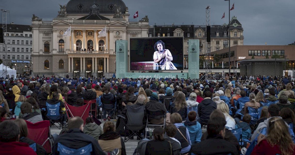 Mit Decken, Camping-Stühlen und Picknickkörben bepackt pilgern die Zuschauer:innen bereits am frühen Nachmittag auf den Platz, um die besten Plätze zu ergattern. Die Oper, welche live im Opernhaus aufgeführt wird, wird via Grossleinwand und Lautsprechern auf den Sechseläutenplatz übertragen. Dann bleiben auch Passant:innen für einige Minuten oder gar Stunden stehen, denn nicht nur die Vorführung, sondern auch das Bild der vielen begeisterten Zuschauer:innen, die alle still und gebannt dem Stück lauschen, sind spektakulär.